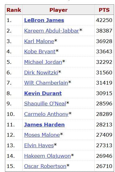值得一提的是,目前的NBA总得分王是詹姆斯,他得到了42250分;而字母哥目前得到了21002分,仅排名第42位。