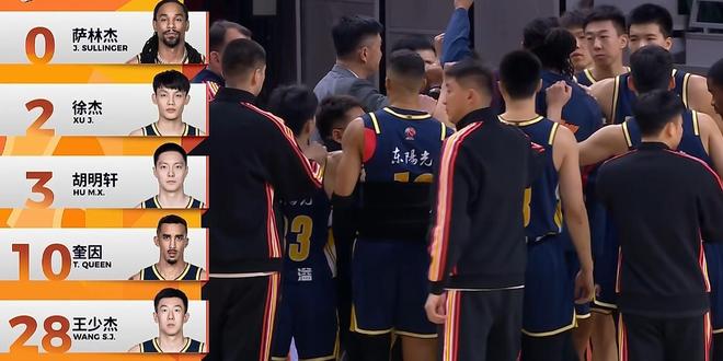 第四节直到7分20秒广东队才由奎因突破拿下本节第一分,由于三分球迟迟未开,导致广东队仍然处于落后,杜锋无奈换上萨林杰,5分35秒郭昊文再持球强杀拿到2分,同曦领先来到3分。