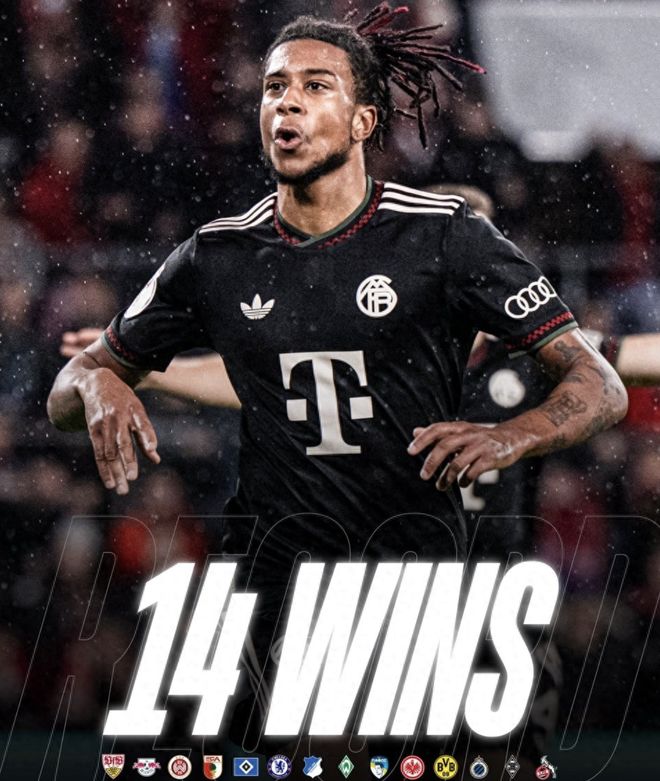 本场取胜后,拜仁本赛季各项赛事继续保持着全胜战绩,拜仁在德超杯、德甲、德国杯以及欧冠中连赢14场,创造队史125年以来的最佳开局纪录,同样也是五大联赛历史最佳开局,此前米兰曾在92-93赛季初取得13连胜,如今该纪录属于拜仁了。14场比赛期间,拜仁共打进50球,场均3.57球,拜仁是本赛季五大联赛中唯一一支全胜球队。